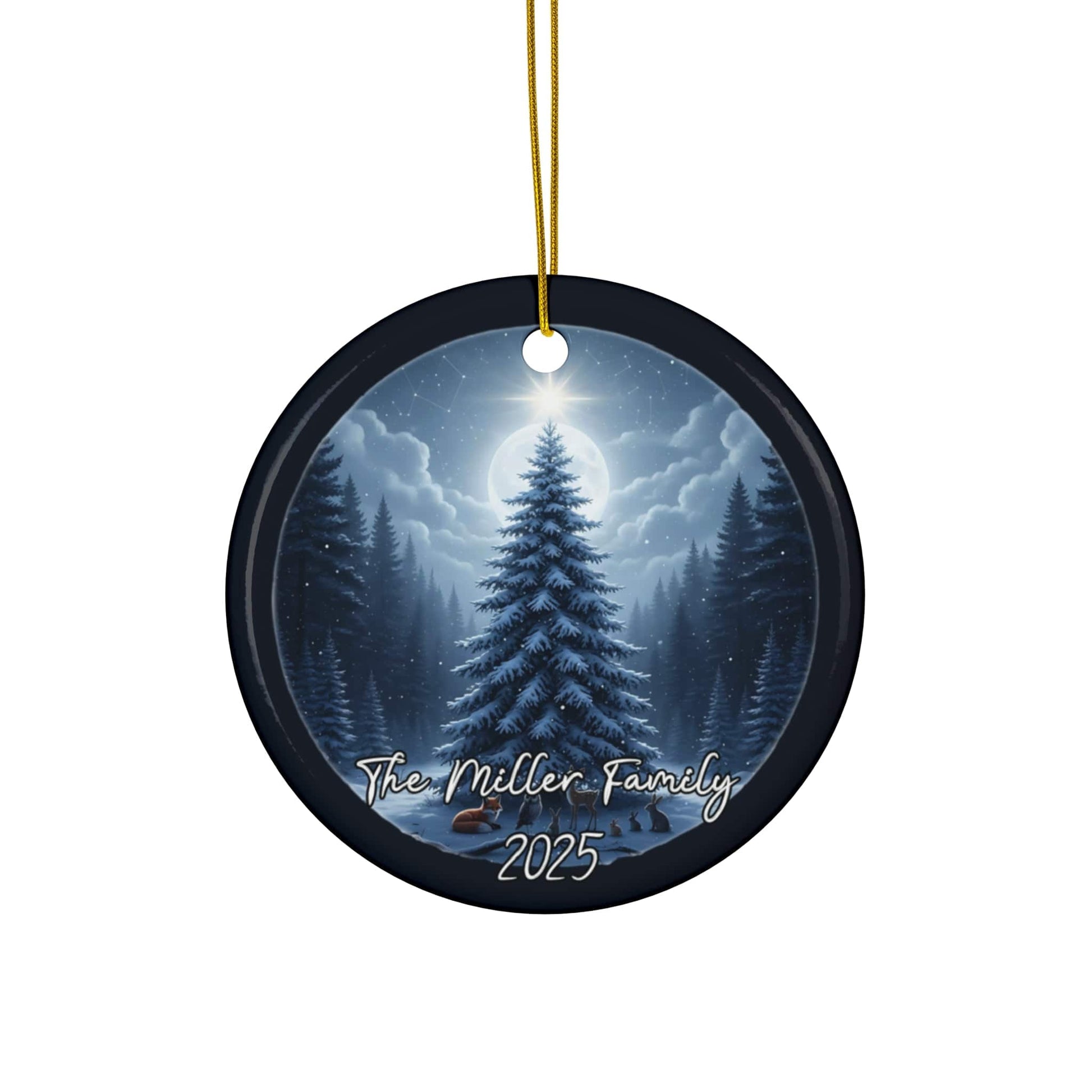 Celebrate your family with this classic ceramic Christmas ornament, personalized with your family name and year. Each piece is custom-printed with vibrant detail and finished with a timeless holiday look. A keepsake you’ll treasure for years—or the perfect gift for another family’s tree.