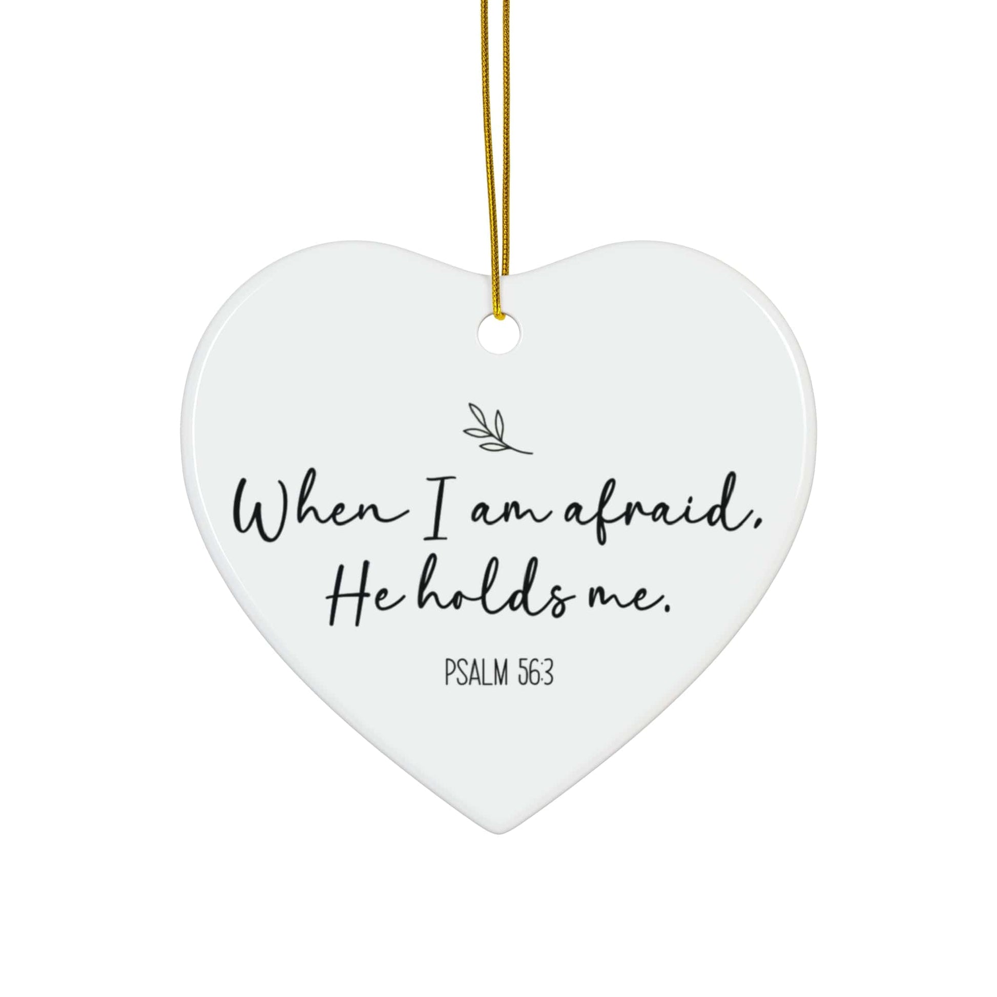 When I Am Afraid He Holds Me – Psalm 56:3 Heart Ornament