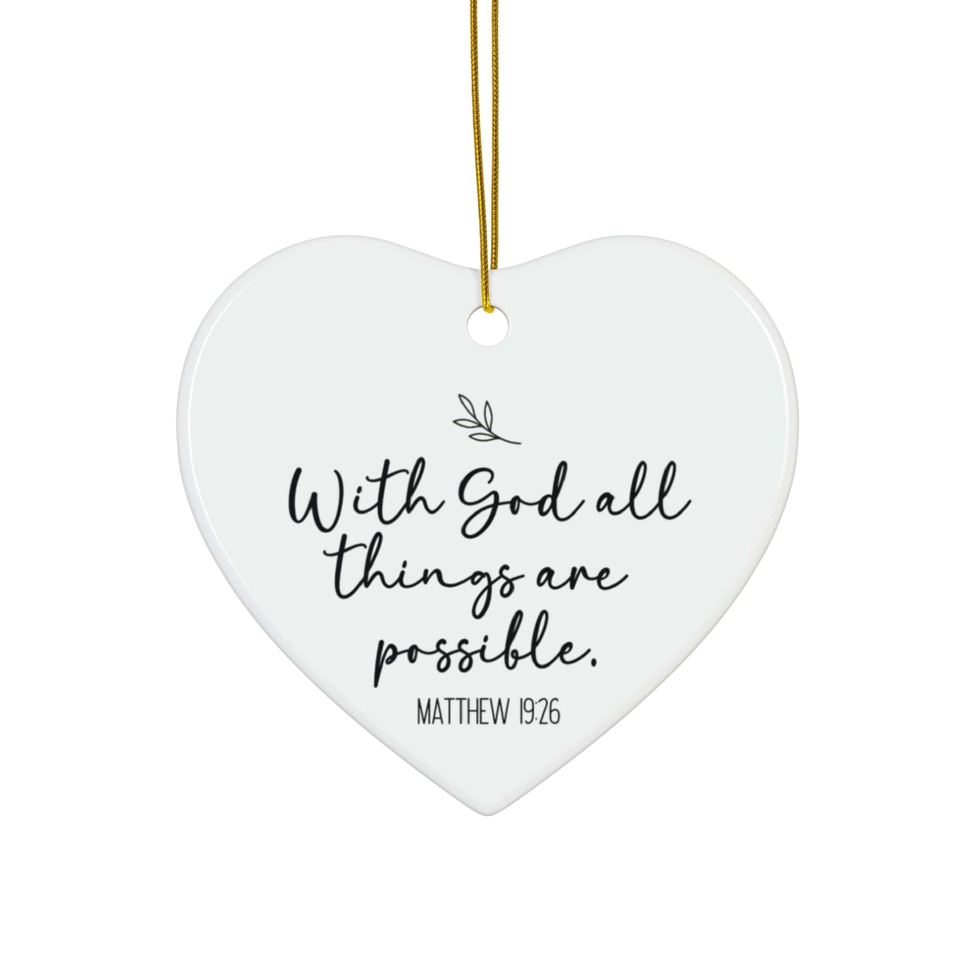 With God All Things Are Possible – Matthew 19:26 Heart Ornament