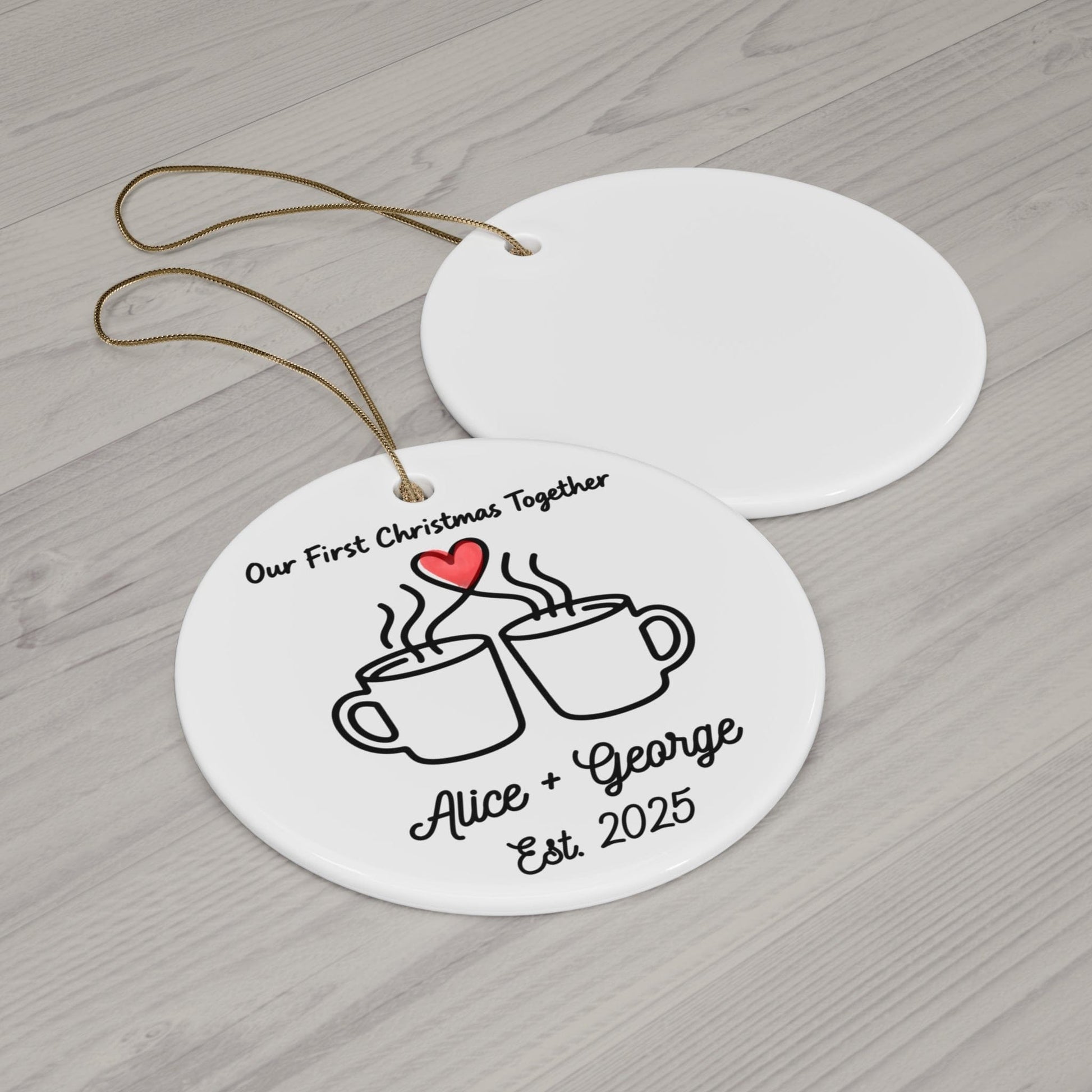 Celebrate your first Christmas together with this sweet coffee-themed ornament. Personalized with your names and year, it’s the perfect keepsake for couples, coffee lovers, and newlyweds starting new traditions.