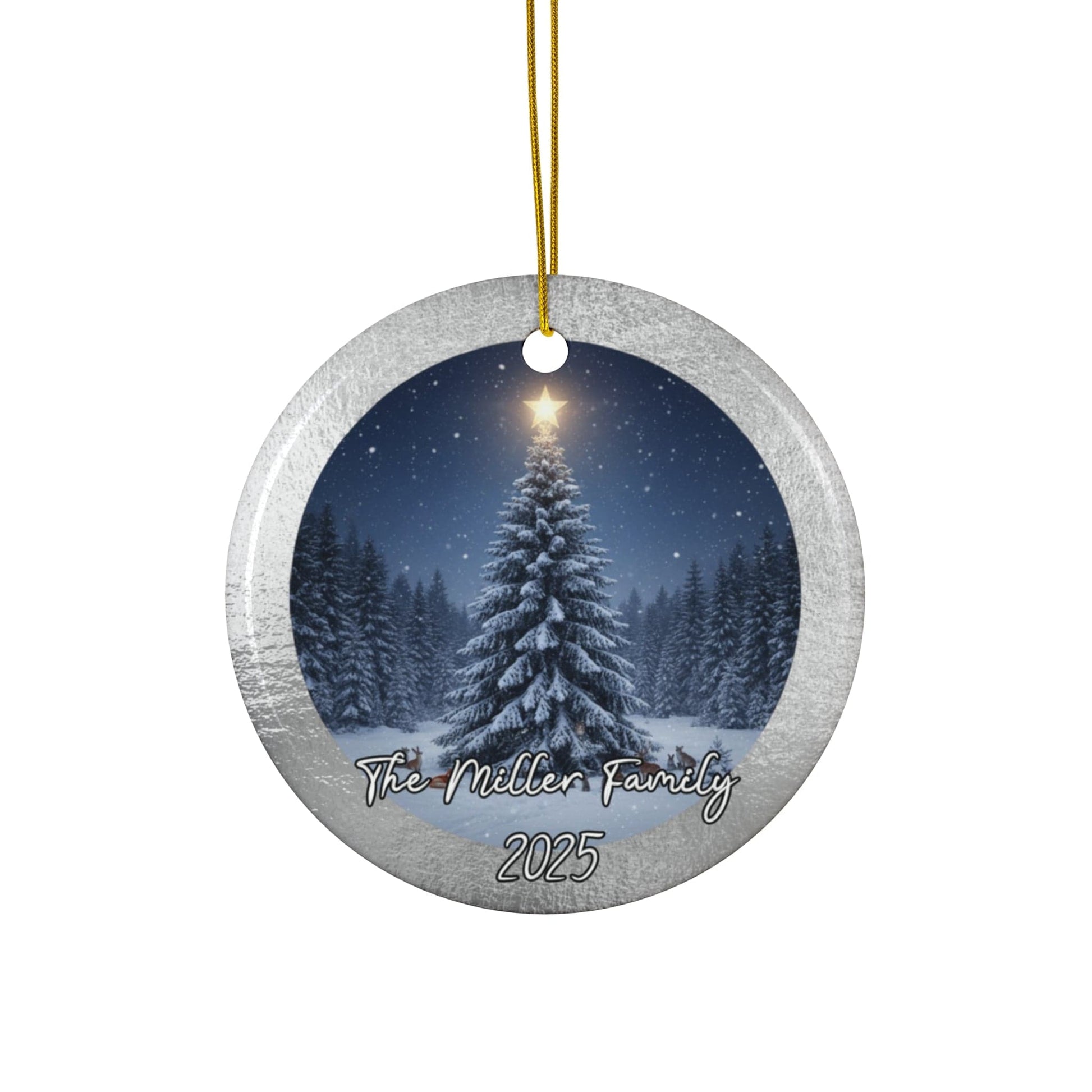 Celebrate your family with this classic ceramic Christmas ornament, personalized with your family name and year. Each piece is custom-printed with vibrant detail and finished with a timeless holiday look. A keepsake you’ll treasure for years—or the perfect gift for another family’s tree.