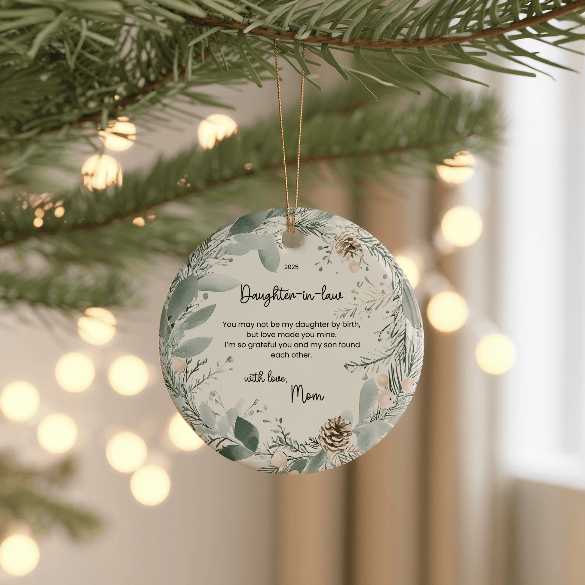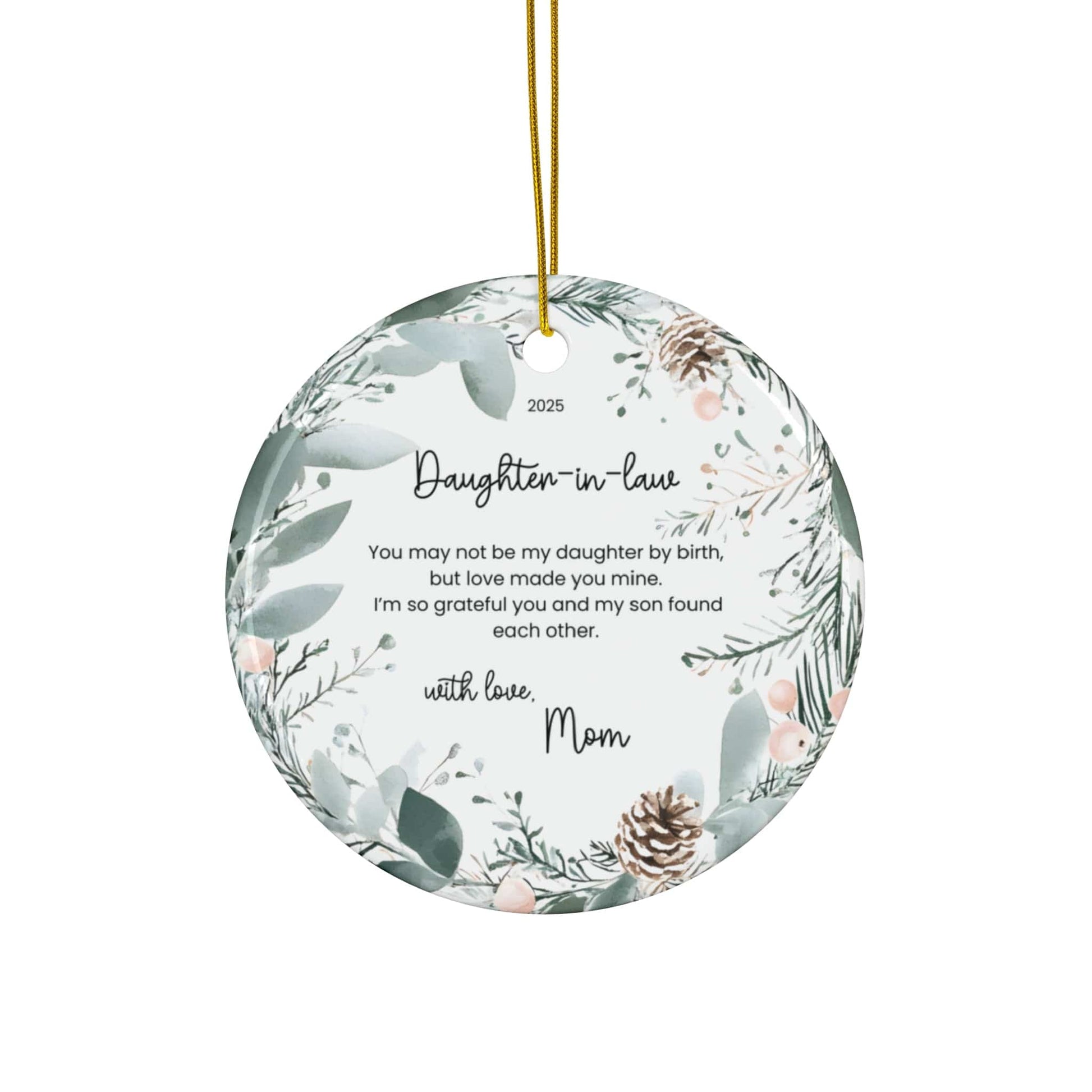 A heartfelt keepsake for the daughter-in-law you’re grateful for. This personalized ornament celebrates the love your families share and makes a meaningful gift for weddings, holidays, or any special moment.